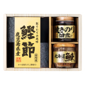 北海道産の鰊フレーク、小豆島で製造された焼き海苔入りの佃煮、鹿児島県産鰹節などを詰合せた和風ギフトです。