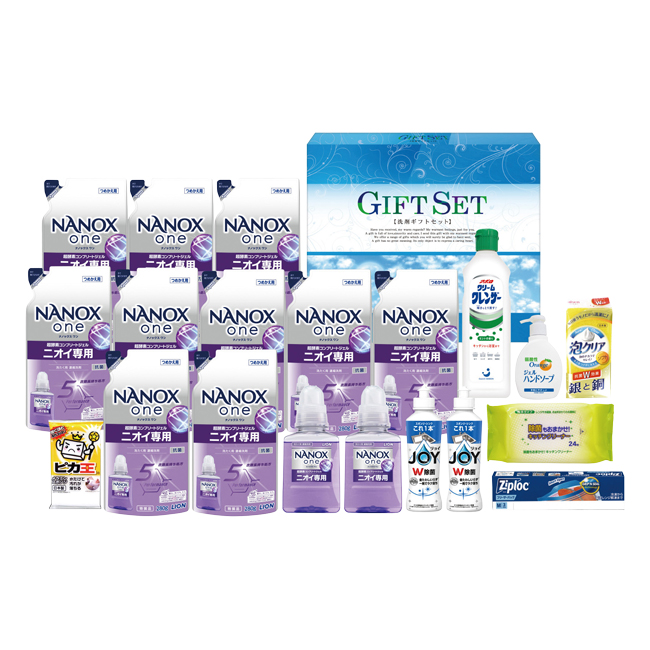 | 内容 | ライオンナノックスone380g×2、ライオンナノックスone(詰替)280g×10、P&G除菌ジョイコンパクト170ml×2、除菌キッチンクリーナー24枚、泡クリアスポンジ、クリームクレンザー400g(ベトナム製)、ピカ王ミニ、オレンジジェルハンドソープ200ml、ジップロックフリーザーバッグM3枚(タイ製)×各1 |