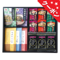 | 内容 | 抹茶風味茶漬けのり(2袋入)・有明海苔ふりかけ(2袋入)・胡麻和えの素(2袋入)・かつお節(2袋入)、かつお風味だしの素(3袋入)各1、即席味噌汁(なす・なめこ・ほうれん草各2)、有明海産味付海苔(8切6枚)×3 賞味期限:製造日より300日 |