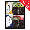| 内容 | 白子のり味付のり(8切5枚)・白子だし塩のり(8切5枚)各2、永谷園お茶づけ海苔(5袋入)・永谷園お吸いもの松茸風味(6袋入)各1 |