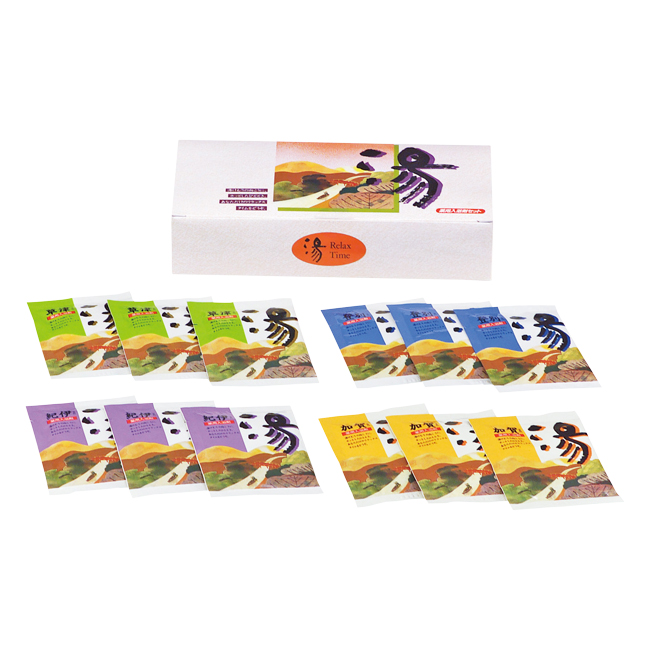 | 内容 | 薬用入浴剤25g×12包(登別・草津・加賀・紀伊各3包) |