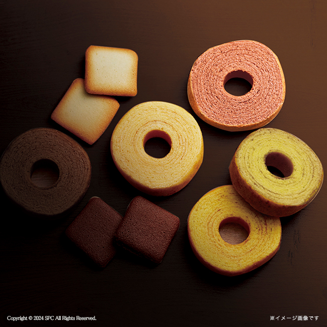 | 内容 | フルーツカラーバウム(ラズベリー・メロン・ショコラ・バナナ)各2・ラングドシャ(プレーン×4枚・チョコ×2枚)・今治産ホテルリゾートタオル340×750mm 賞味期限:製造日より常温で120日間 |