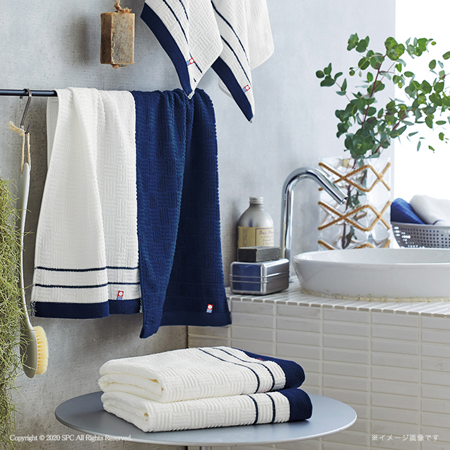 ノーブルな紺色と白色のコントラストが美しい、高級感のあるタオルです。