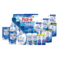 抗菌洗剤アリエールと、少量でたくさん洗える濃縮タイプの食器洗剤除菌ジェル、室内干しのイヤなニオイを防ぎ、ふっくら柔らかく仕上がる抗菌・消臭ソフターなどのギフトです。