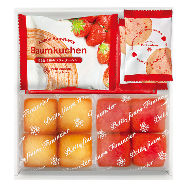 | 内容 | あまおう苺バウムクーヘン・プチフィナンシェ4個入(あまおう苺・プレーン)×各1、焼きほろろクッキー(イチゴ)×2 賞味期限:製造日から90日 |