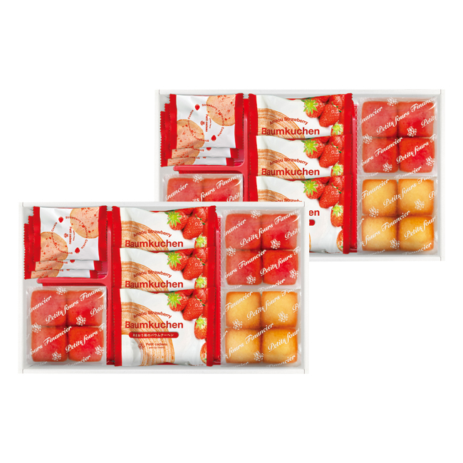 | 内容 | あまおう苺バウムクーヘン・焼きほろろクッキー(イチゴ)×各6、プチフィナンシェ4個入(あまおう苺)×4、プチフィナンシェ4個入(プレーン)×2 賞味期限:製造日から90日 |