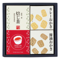 | 内容 | 静岡産焙じ茶60g・たまり醤油おかき24g・カレーおかき24g×各1 賞味期限:製造日から1年 |