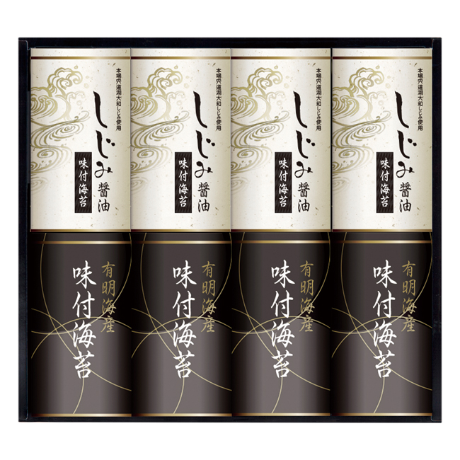 | 内容 | しじみ醤油味付のり(8切8枚×2)・有明海産味付のり(8切8枚×2)×各4 |