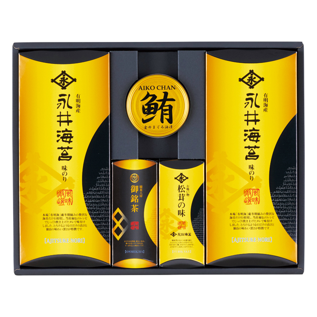 | 内容 | 永井海苔 味付海苔(8切6枚×2)×2、永井海苔 お吸い物(松茸風味)(3.3g×2)・ライトツナフレーク油漬け70g・深蒸し茶40g×各1 賞味期限:製造日から1年 |