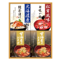 | 内容 | 甘海老みそ汁(7.5g×3)×2、北海道産鮭茶漬け(4g×3)・永谷園松茸風味お吸い物(2.3g×4)×各1 賞味期限:製造日から1年 |