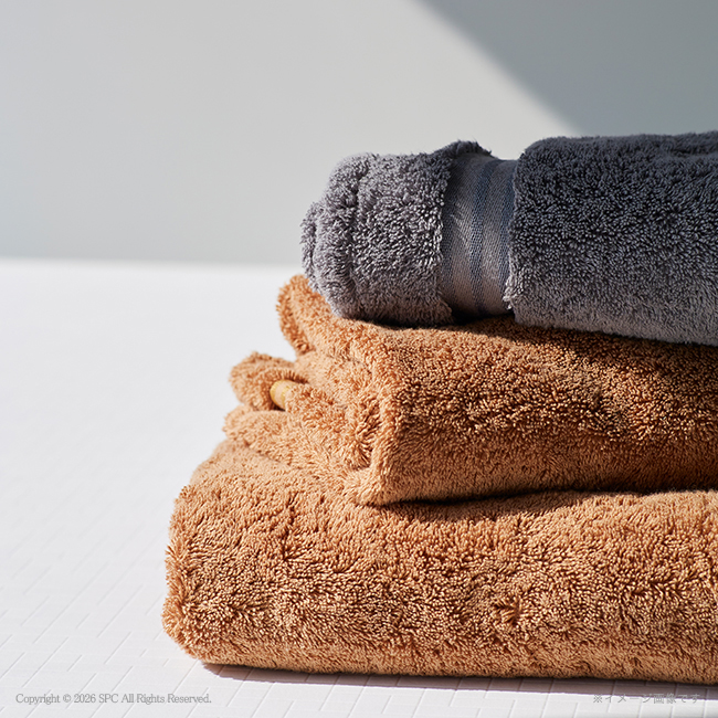 しっかり厚手でボリュームたっぷりのふっくら感となめらかな肌ざわり、吸水性に優れた使い心地、どれもあきらめずにつくりあげたタオルです。