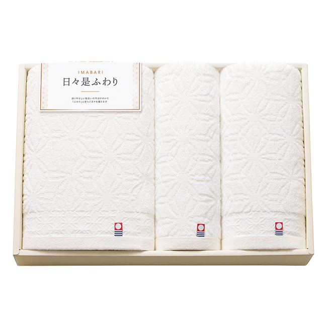 | 内容 | バスタオル(60×115cm)・フェイスタオル(34×75cm)・ハンドタオル(34×34cm)・綿ボディタオル(30×95cm)・石けん3P(35g) |